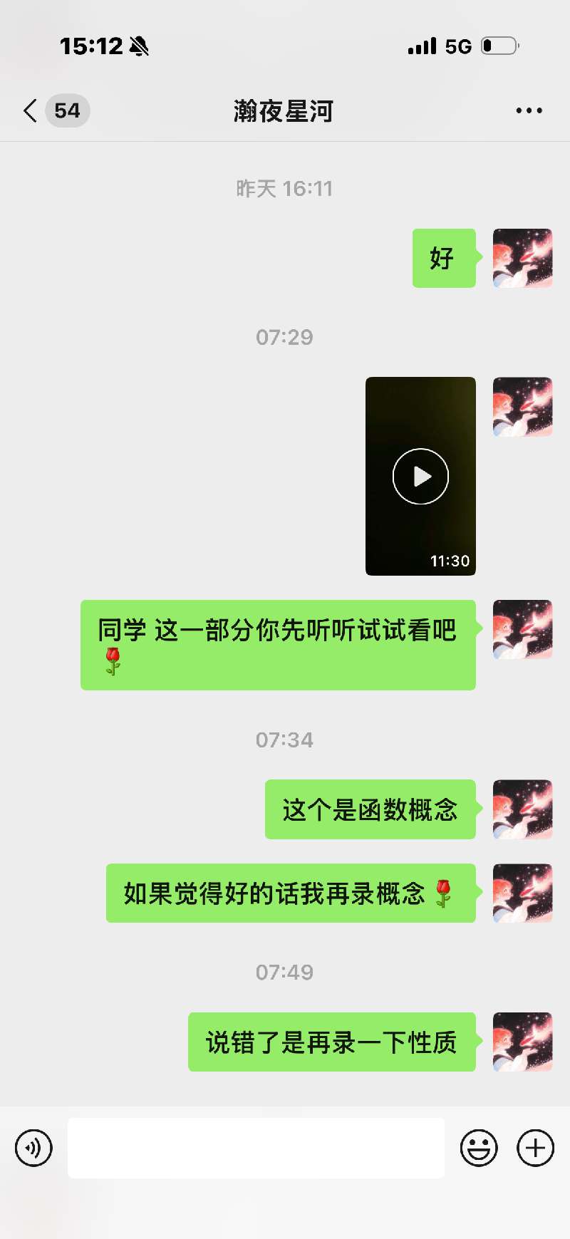 和同学进行了沟通,明白了同学的高中数学学习需求,翻看高一电子课本,除了同学给的网盘资料外自己翻阅了一些高中数学视频资料,进行再一次回顾后录制了两次视频,第一次录制不太顺利,第二遍取得了自己比较满意的效果,给同学讲解了函数的概念这一课时的内容,采用了视频的方式