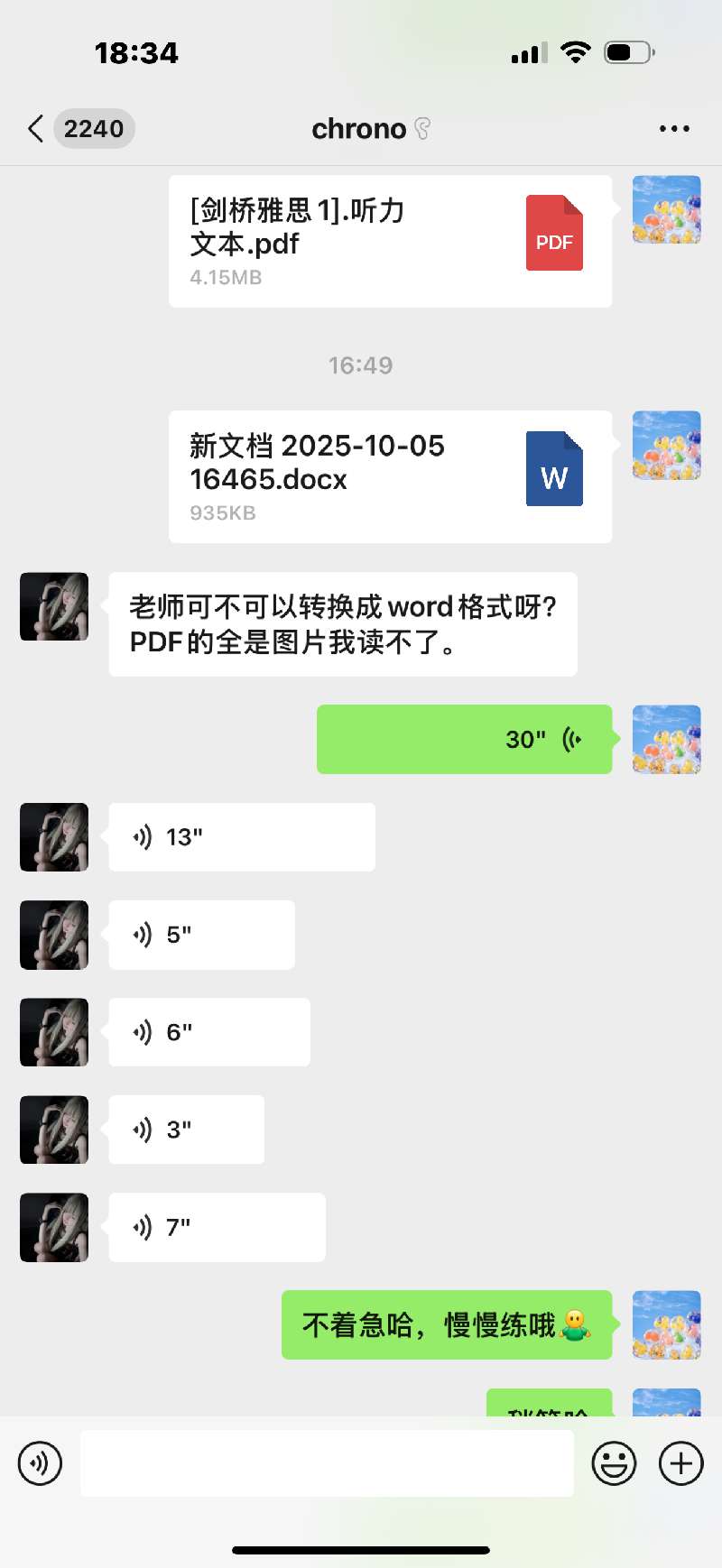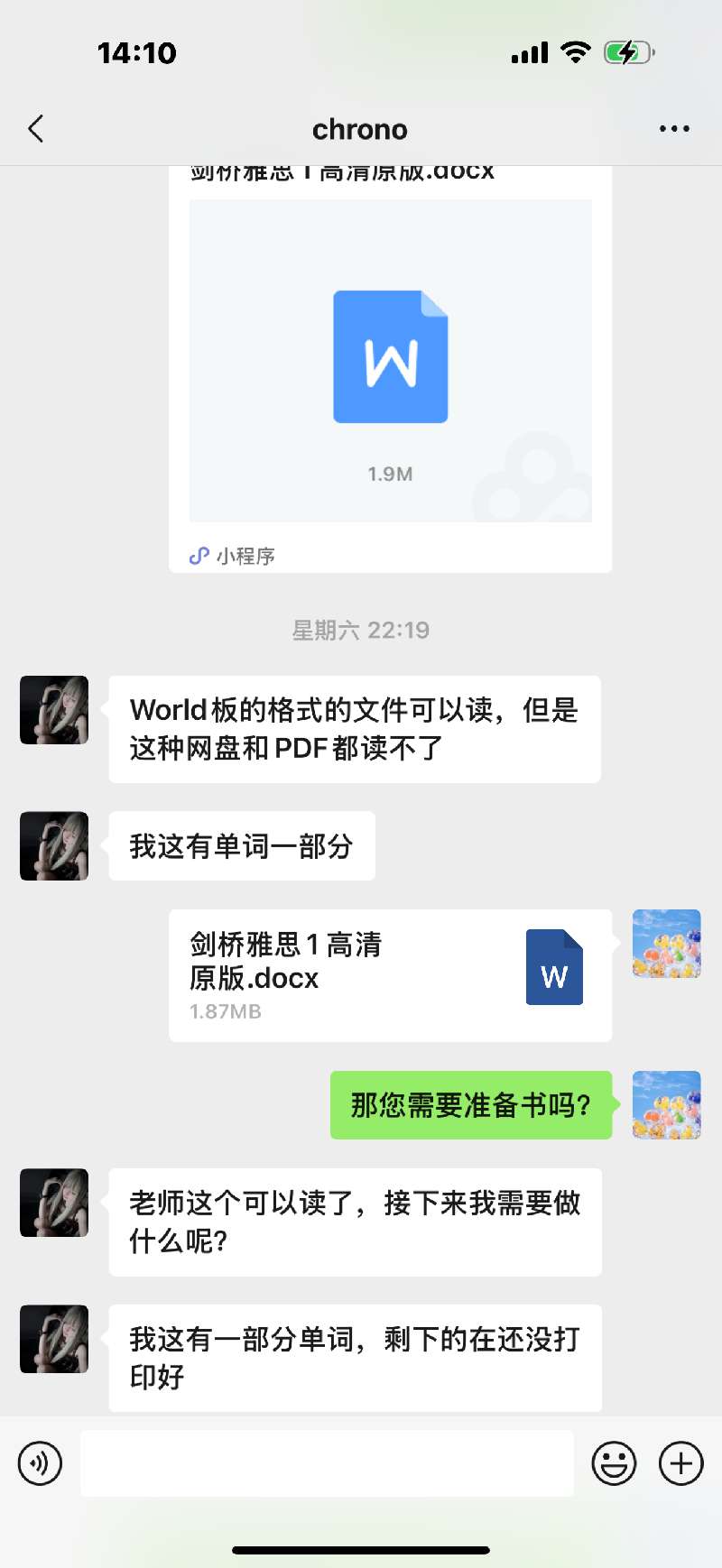 了解学生的学习需求,辅导学生使用百词斩App打卡雅思单词,给学生发送雅思真题电子版并约定学习计划。
