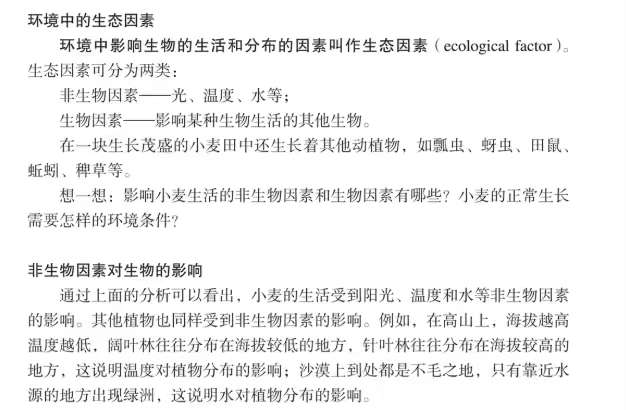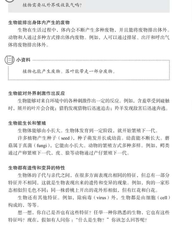 初一上生物学第一章第一节及第二节开头,讲解了生物是什么及其特点?初步介绍了生物圈