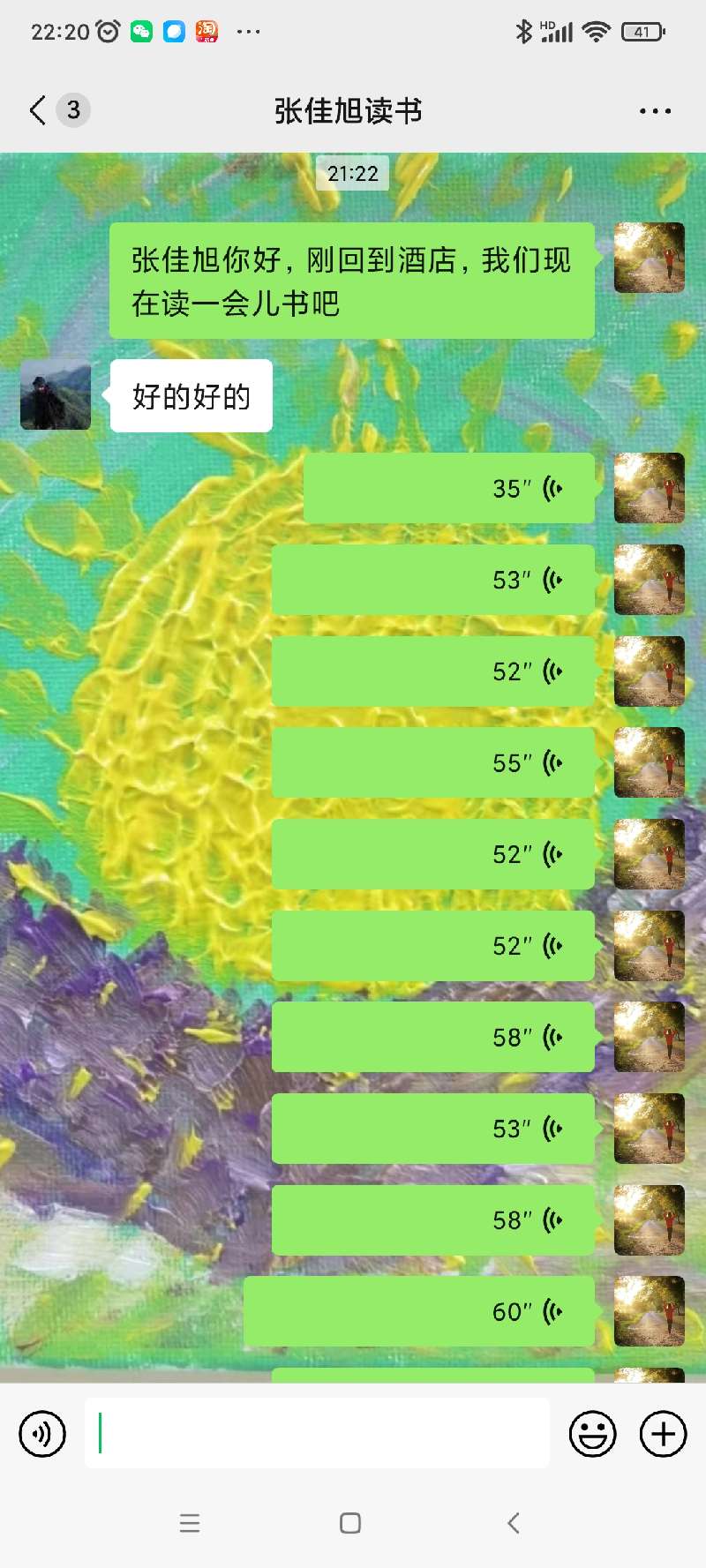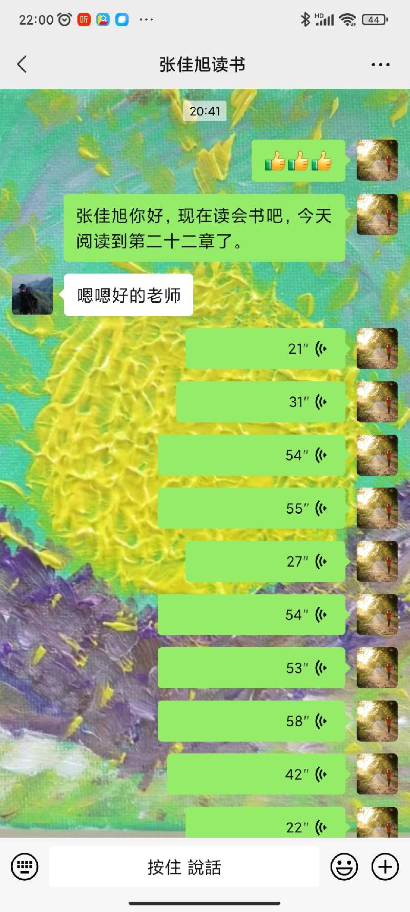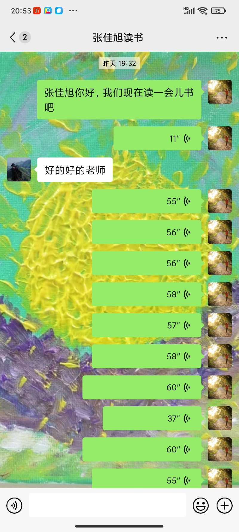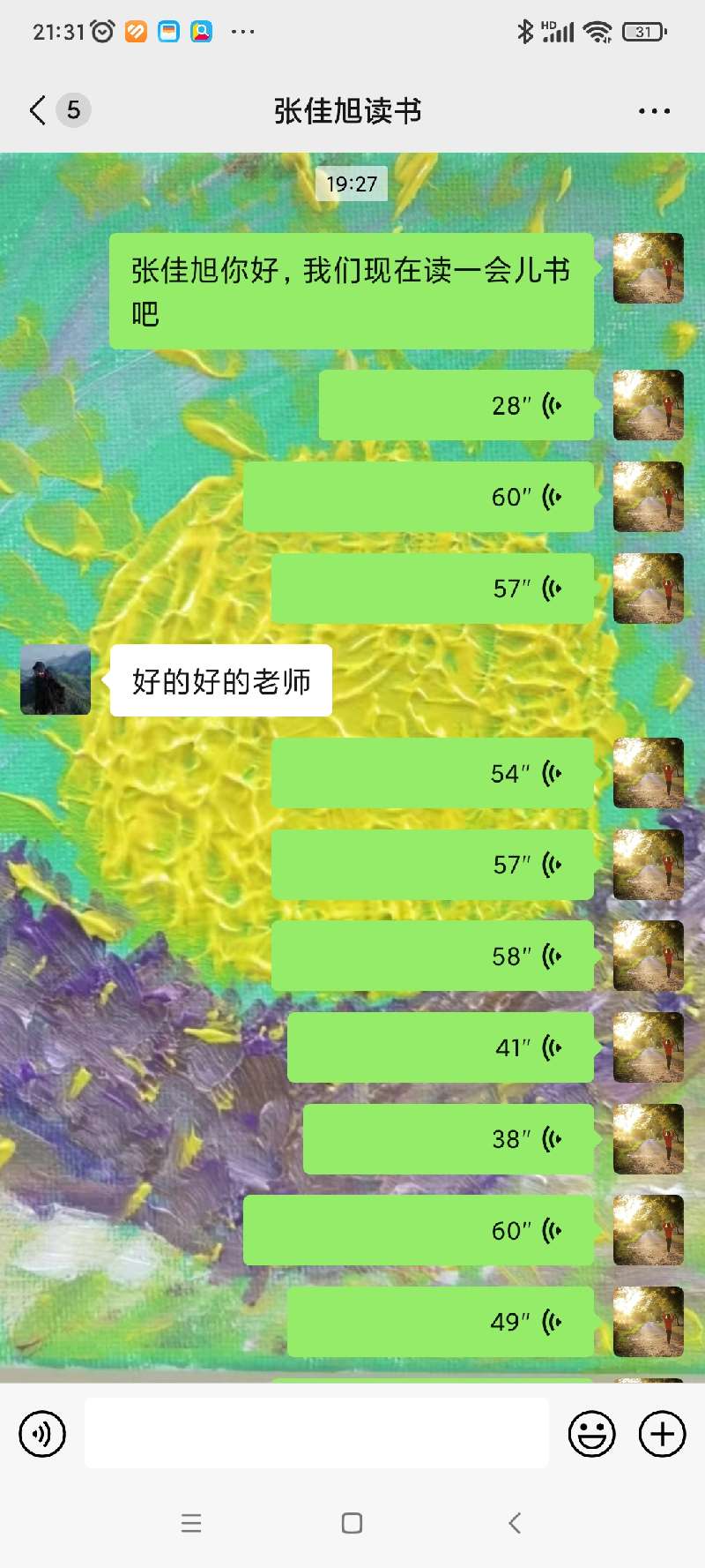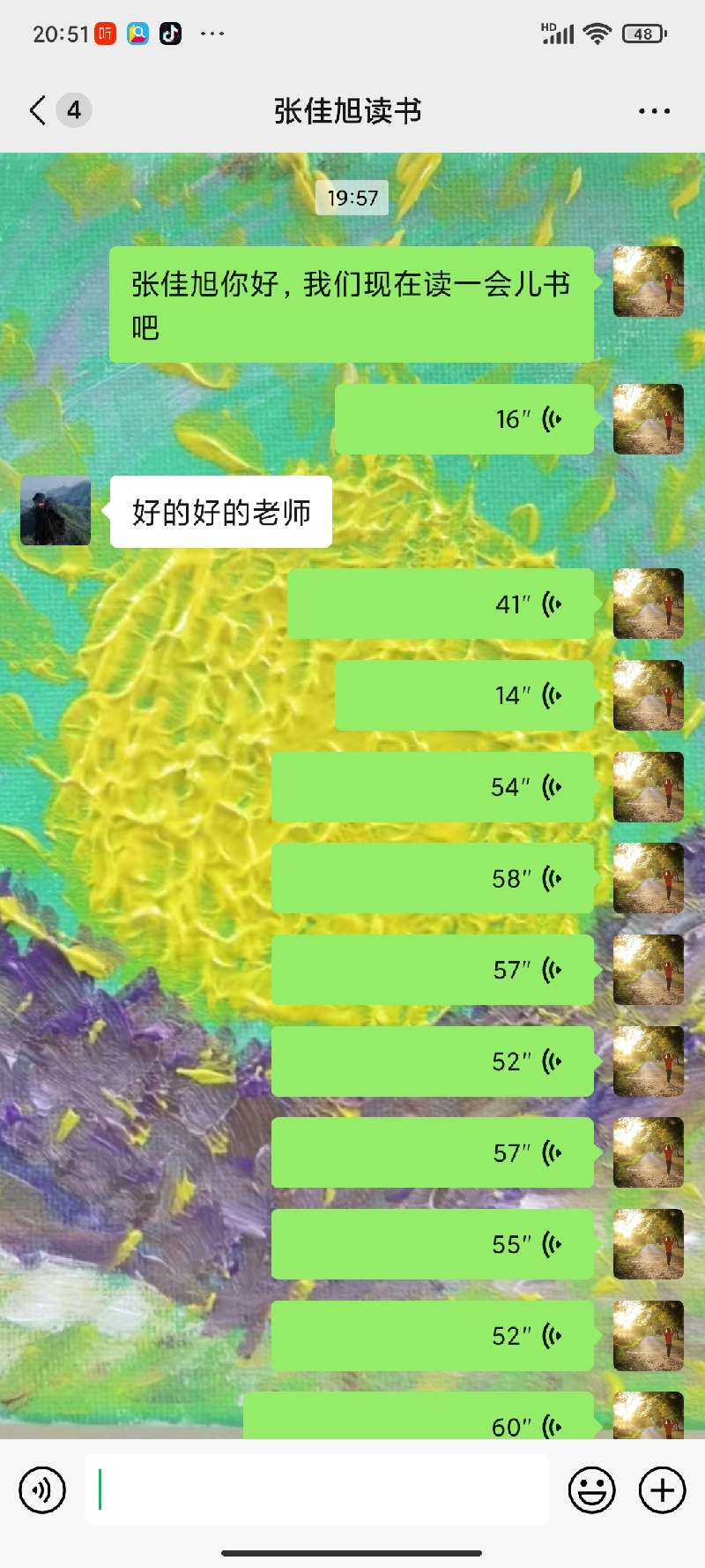 张佳旭同学阅读热情很高,为人和善,交流沟通过程很顺利,交流很愉快。